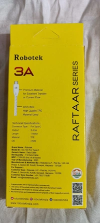 Robotak DC-109 Type-C Fast Cable 3Amp 5 Manth Warranty