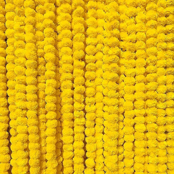 Yellow Color_Artificial Marigold Garland Strings_5 Pcs_Fluffy Marigold Flowers for Decoration_Pooja Room